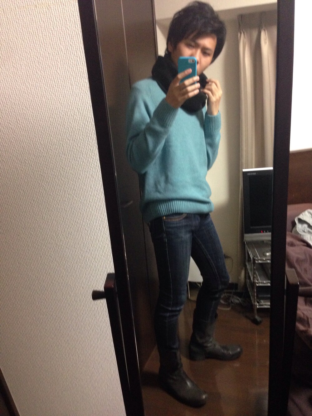 初スヌード、巻き方がテキトー テキトーすぎる! バックジップのブーツ、もはや雨靴扱いですw