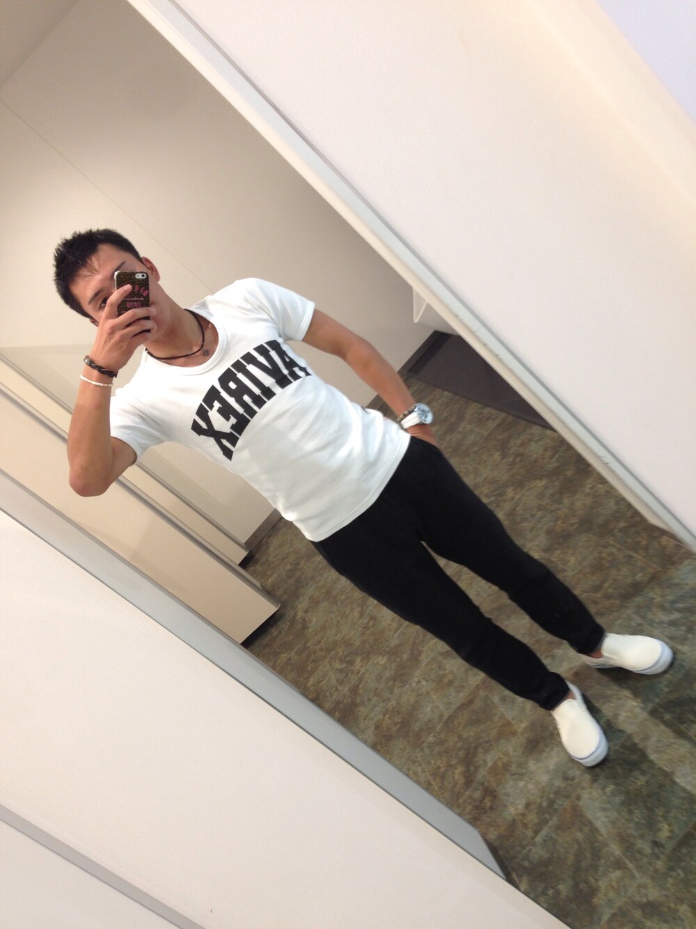 モノトーンです。 AVIREXのTシャツちょっとサイズ小さいかも(´・_・`)
