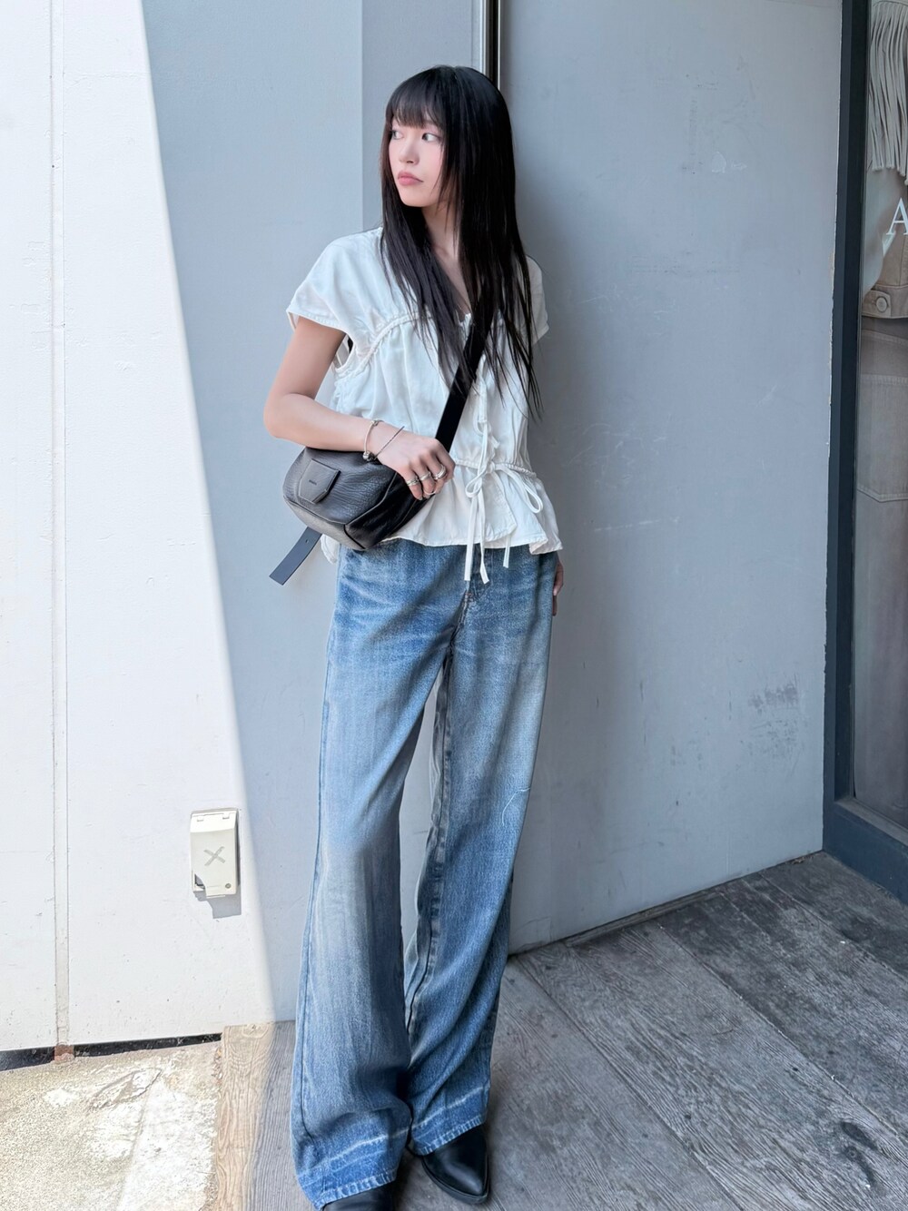 今日はコットン素材のトップスに、 ウォッシュデニムを合わせたラフなコーデ。 気温もちょうどよくて、ふわっと風を感じられる日🌬️ あえてアクセは控えめにして、 自然体で過ごせるスタイリングにしてみました。 Instagramにも普段のスタイル載せてるので、よかったらぜひ🫶 ▶︎ @91uyu