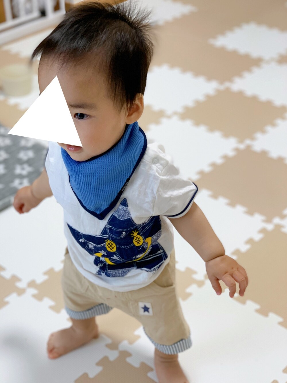 去年ばぁばにもらった服✨ ママはシンプルが好きだけど😂😂😂 男の子ぽくて新鮮! 今日は初節句✩⃛ あとで袴風にお着替え。 家族3人でお祝いします😌