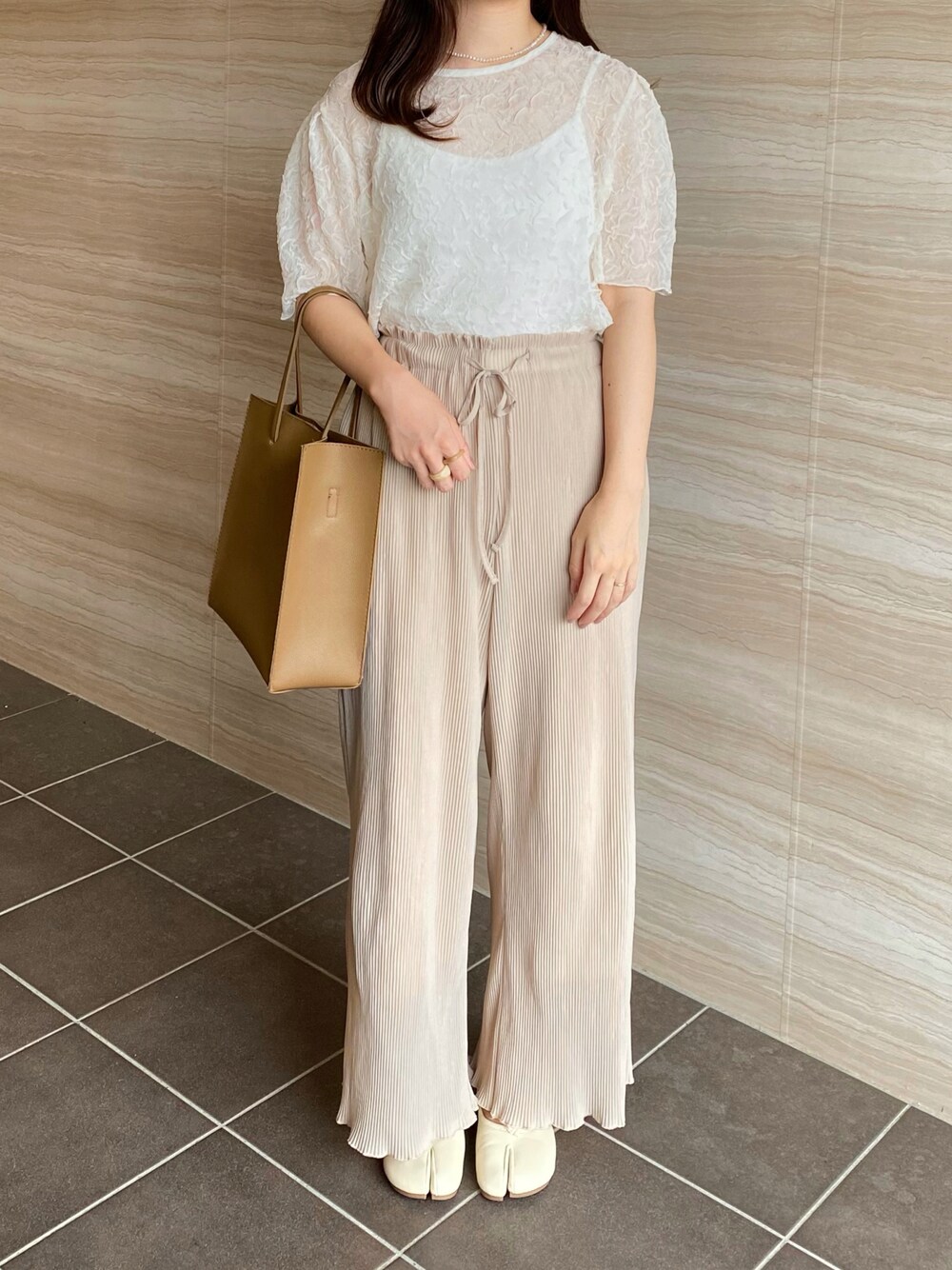 rinariのシャツ/ブラウス「クシュクシュシアーブラウス/【WEB/EC限定商品】」を使ったコーディネート