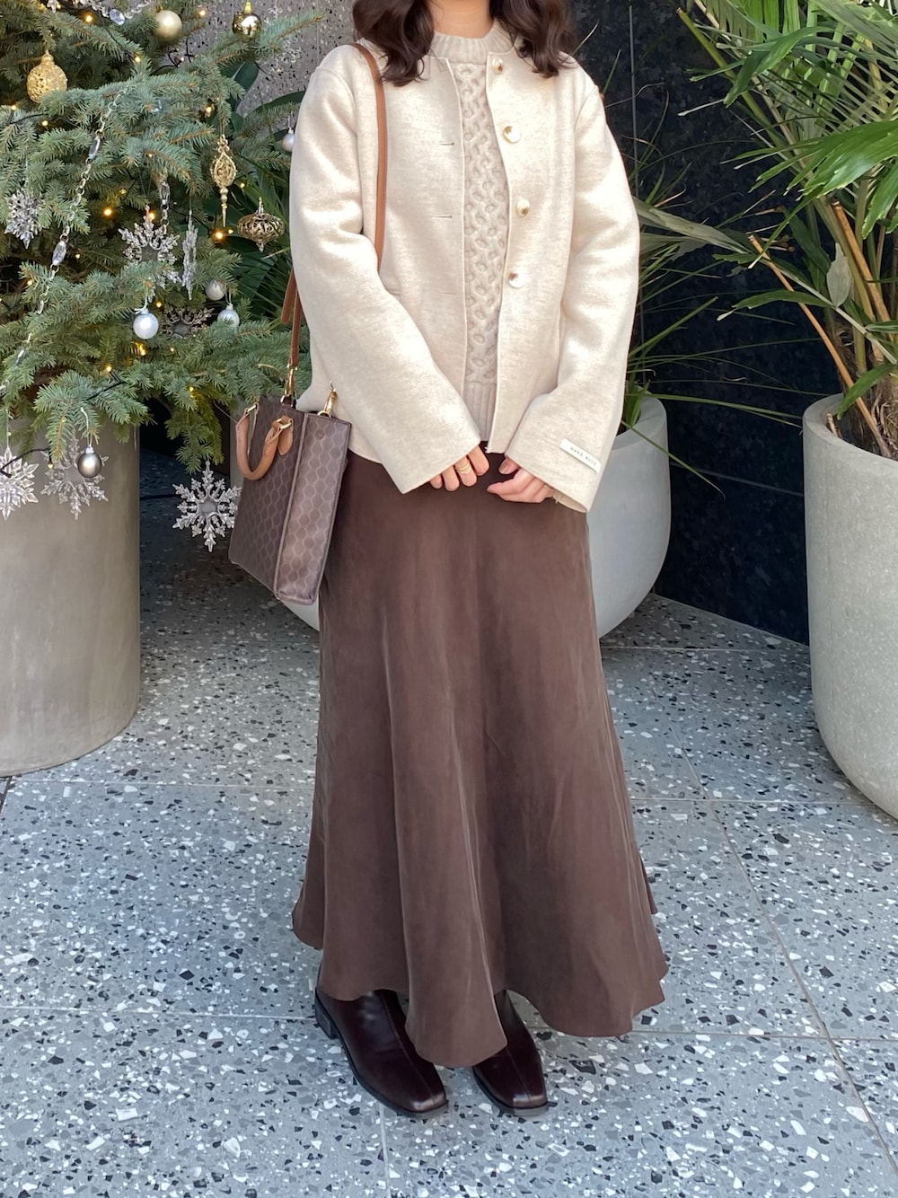 rinariのショルダーバッグ「モノグラムスクエアミニショルダー」を使ったコーディネート