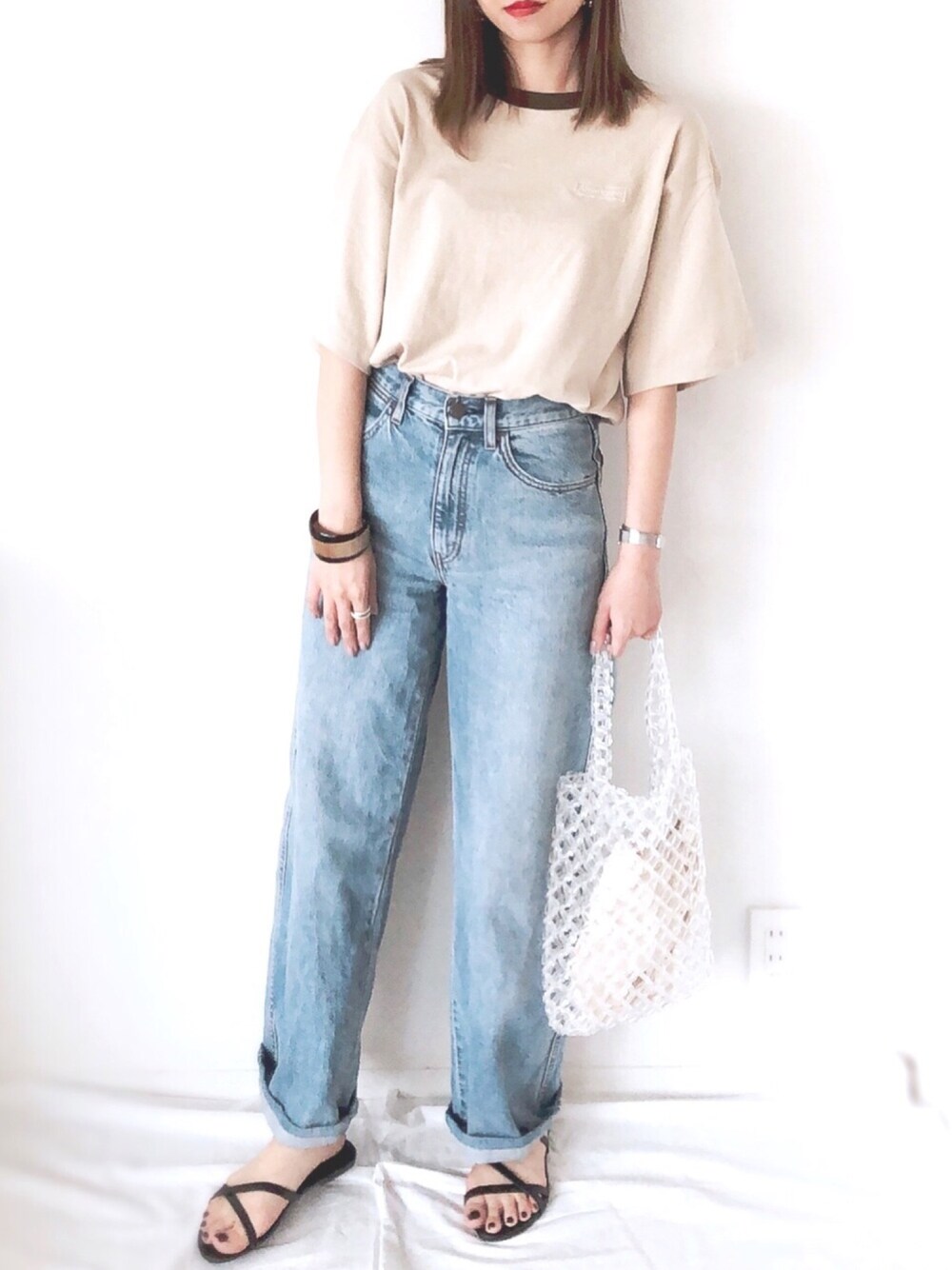 AMERICANAのリンガーTに UNIQLO Uのデニムなシンプルコーデ🌴 見てくださりありがとうございます❤︎ Instagram🥀🥀@uyuyu_wear