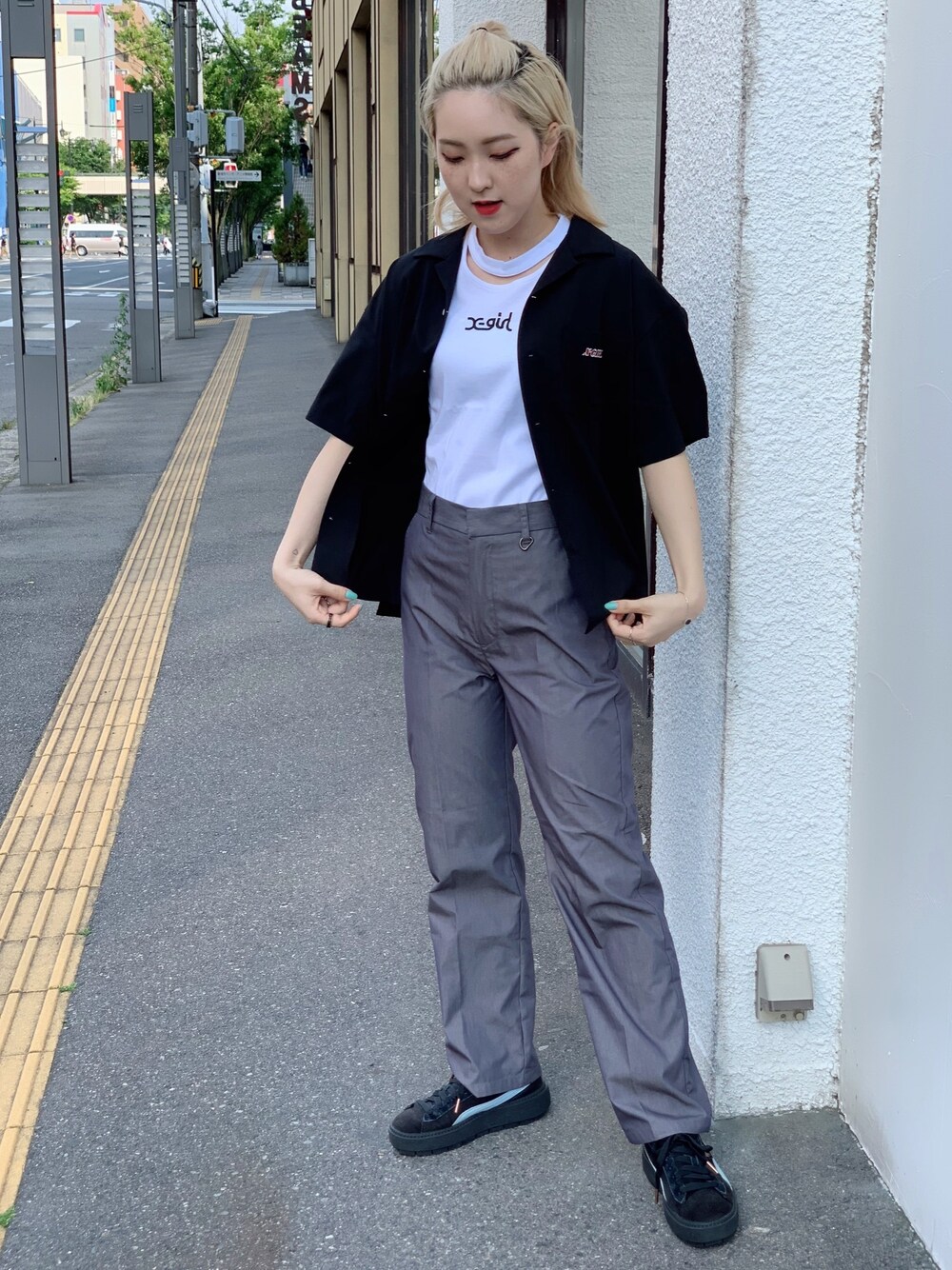 Emiru(XLARGE/X-girl新潟(X-girl))のシャツ/ブラウス「ANGEL FACE S/S SHIRT」を使ったコーディネート