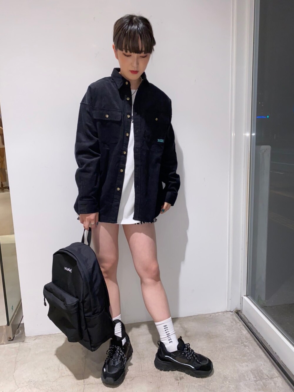 Emiru(XLARGE/X-girl新潟(X-girl))のシャツ/ブラウス「OVAL LOGO CORDUROY L/S SHIRT」を使ったコーディネート