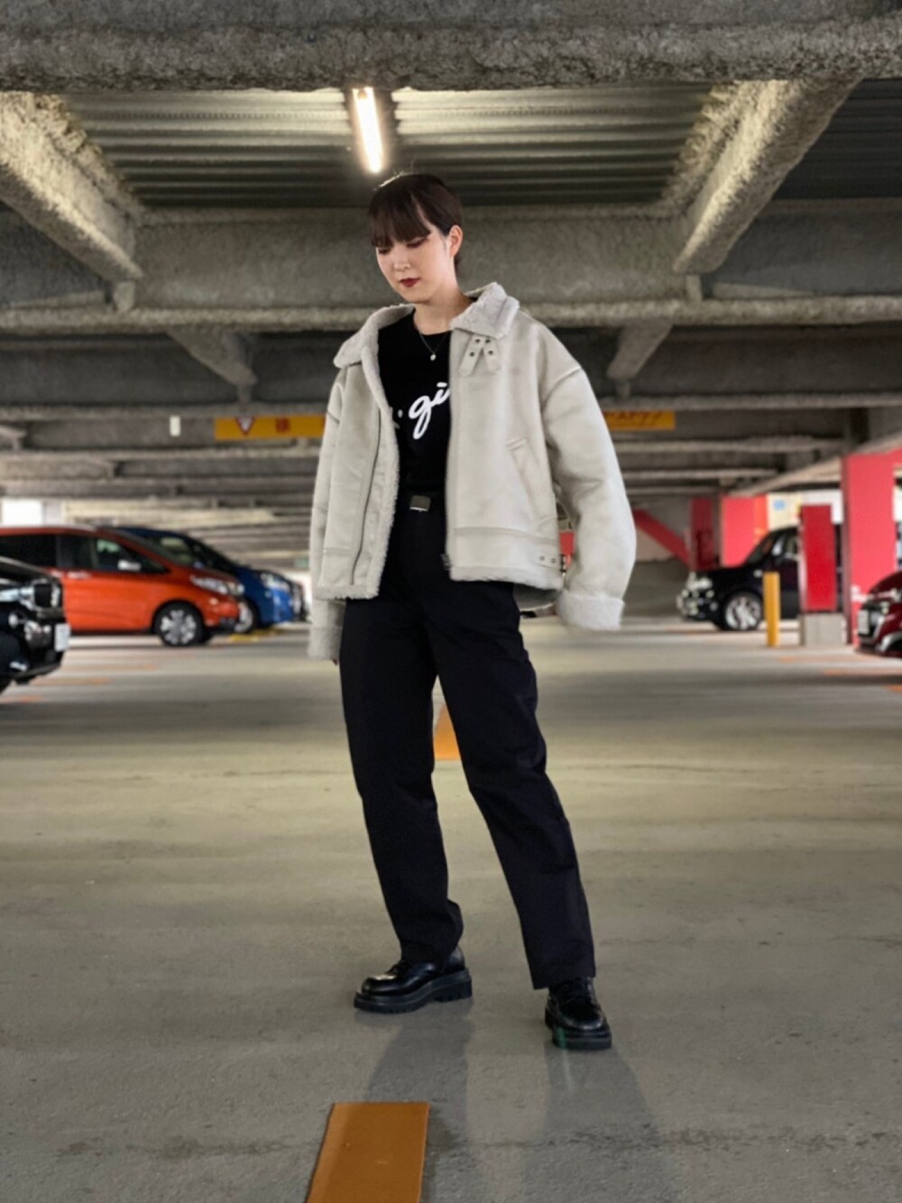 Emiru(XLARGE/X-girl新潟(X-girl))のムートンコート「FAUX MOUTON JACKET」を使ったコーディネート