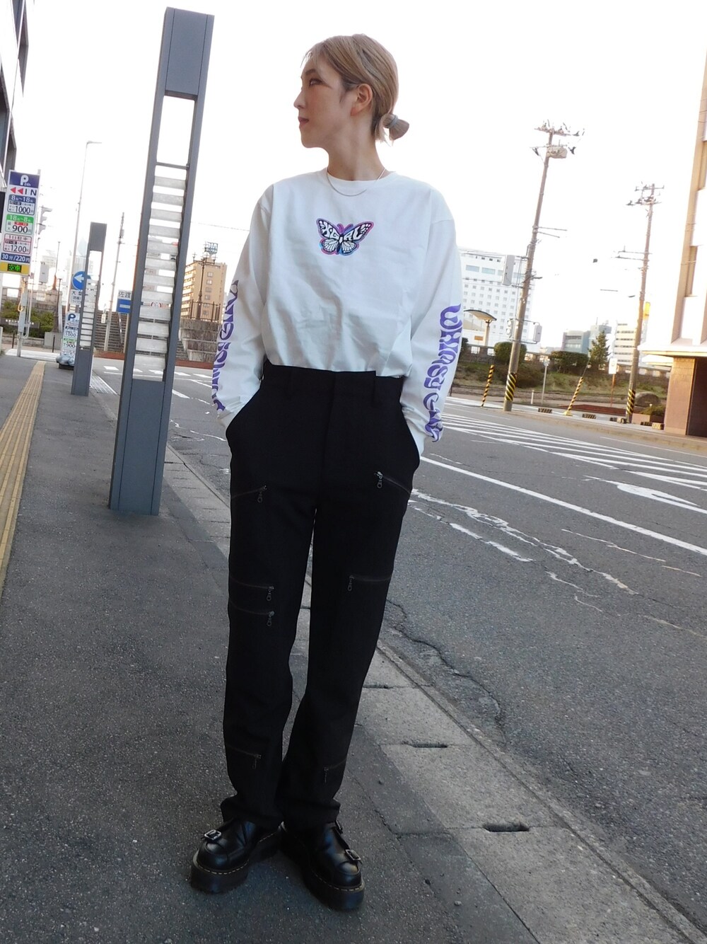 Emiru(XLARGE/X-girl新潟(X-girl))のTシャツ/カットソー「MARBLE BUTTERFLY L/S TEE」を使ったコーディネート
