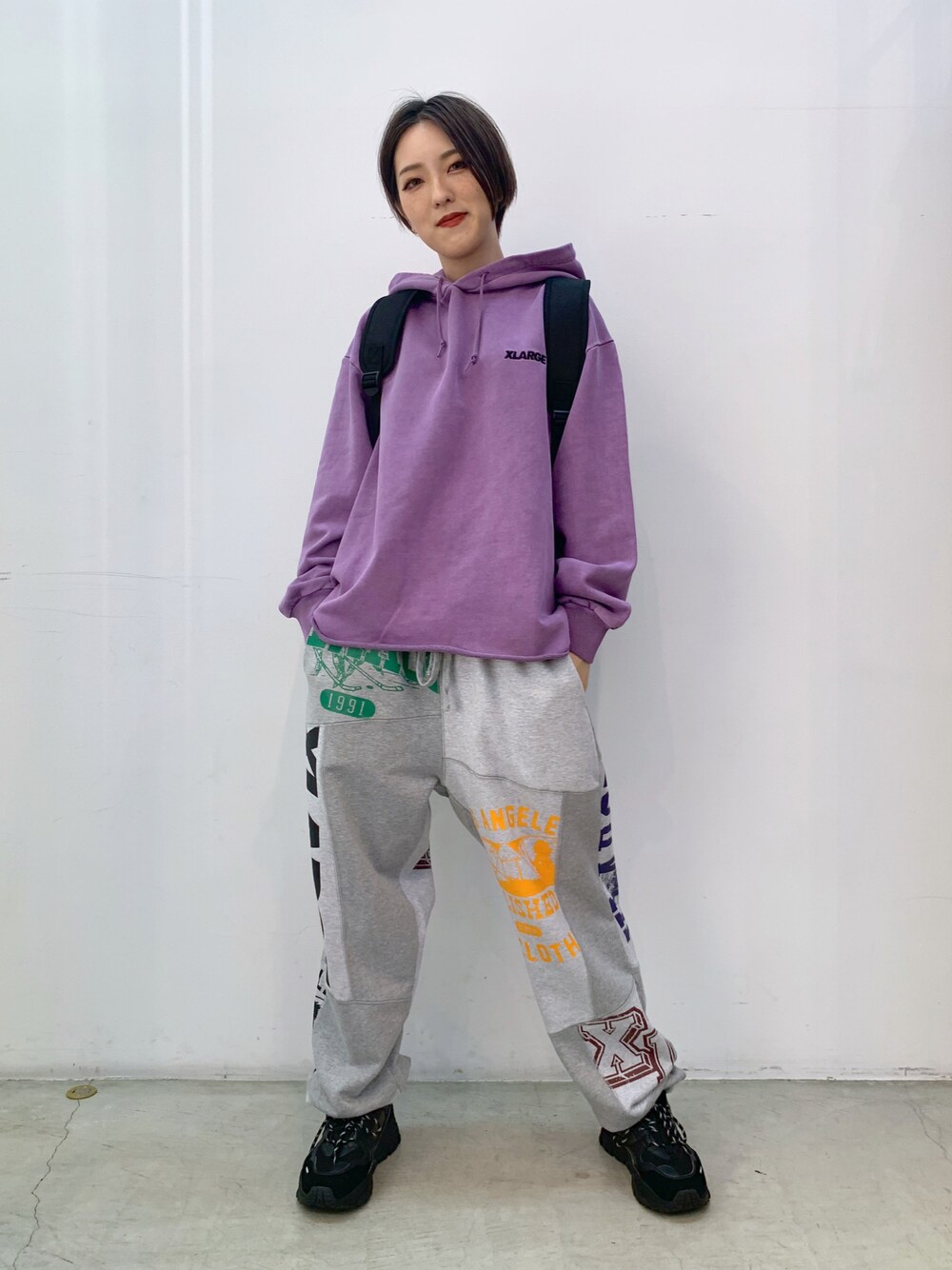 Emiru(XLARGE/X-girl新潟(X-girl))のその他パンツ「PATCHWORK SWEAT PANTS」を使ったコーディネート