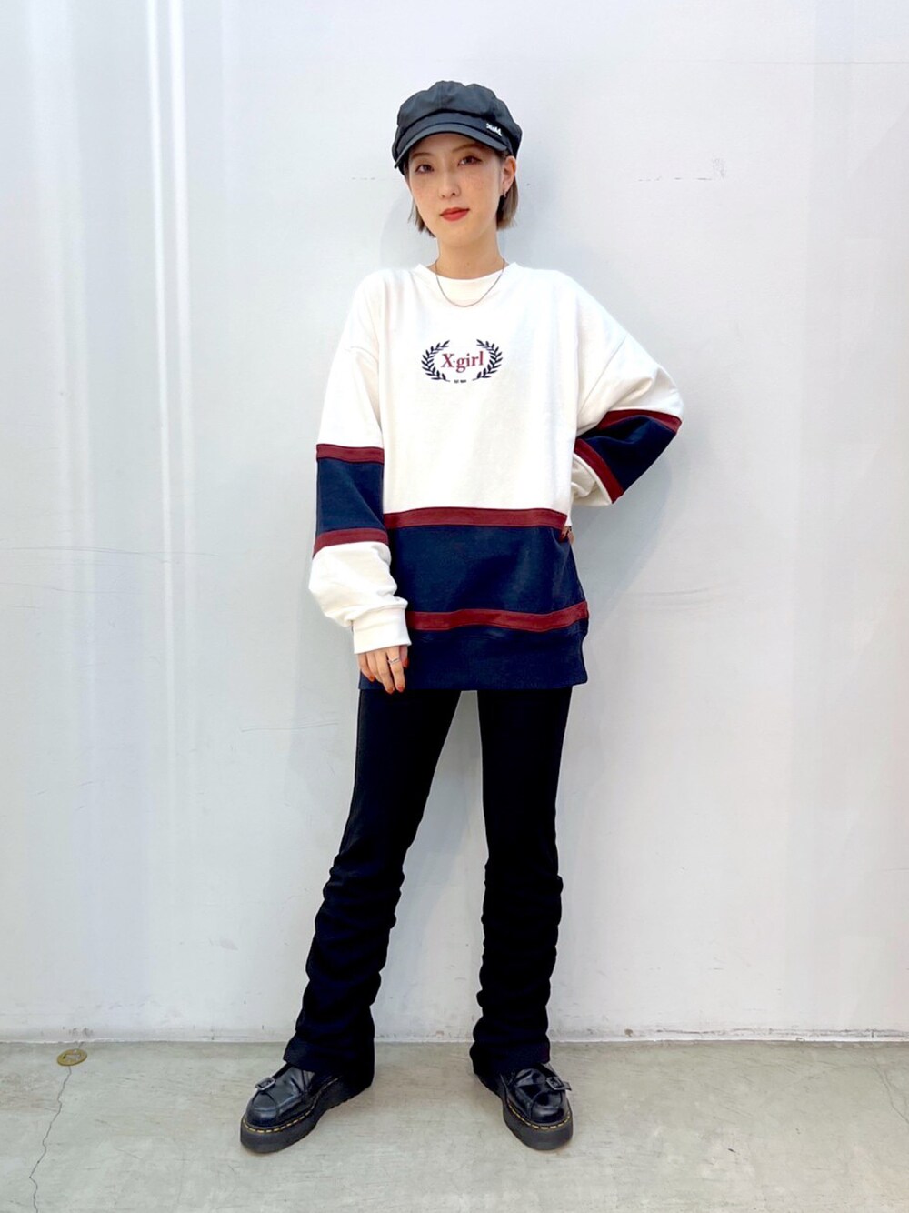 【 165cm / 普段の着用サイズM 】 *SWEAT : M S.M展開になっていて大きめに着れます! おしりが隠れるくらいの丈です◎ *PANTS : M ぴったりとしたサイズ感なのでMサイズを履いていますが少し丈長めなので厚底と合わせるのがおすすめです♡ 【 Instagram → @pemi_513 】