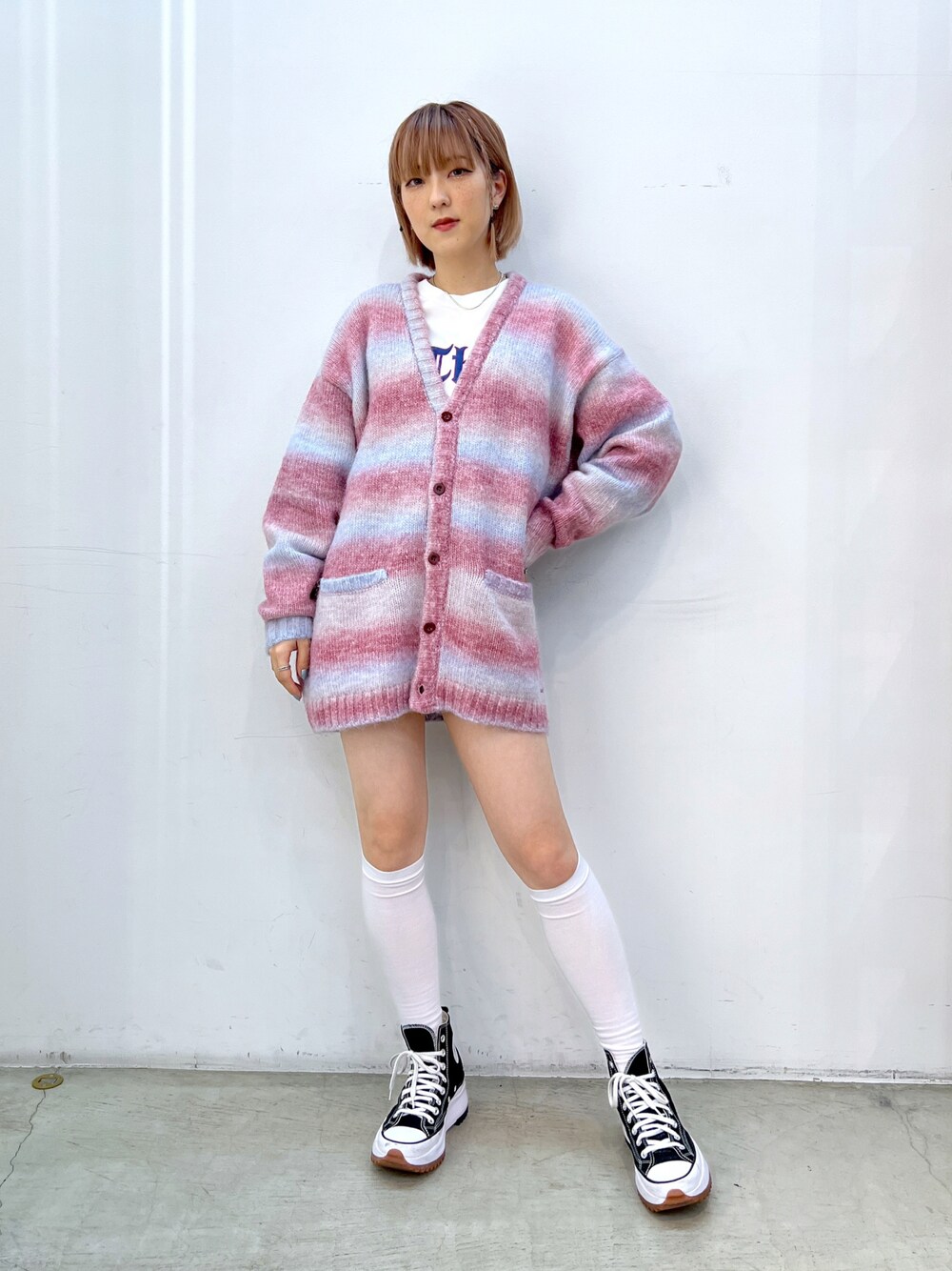 Emiru(XLARGE/X-girl新潟(X-girl))のカーディガン/ボレロ「GRADATION KNIT CARDIGAN」を使ったコーディネート