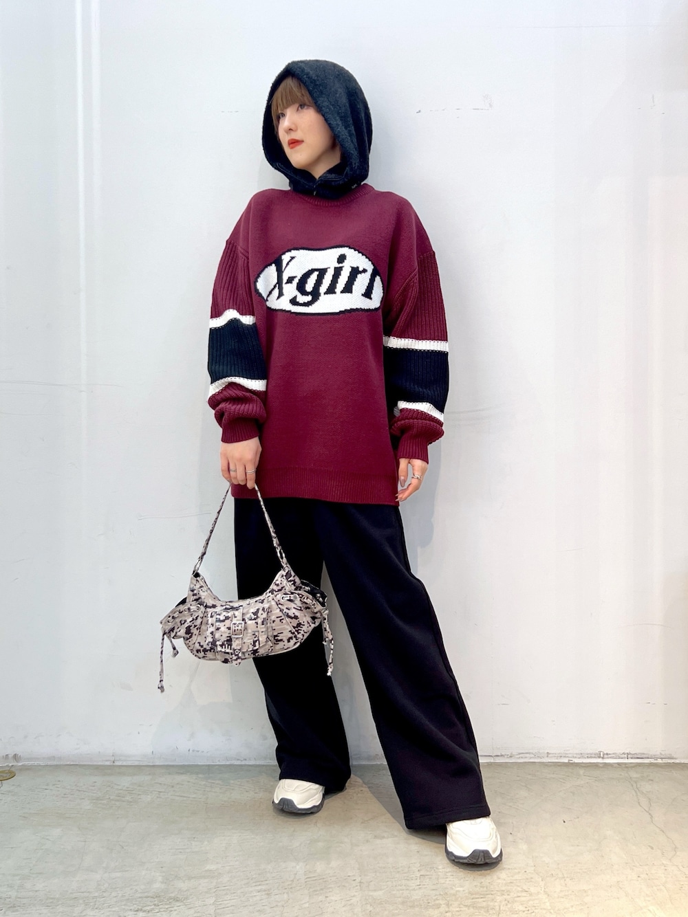 Emiru(XLARGE/X-girl新潟(X-girl))のニット/セーター「OVAL LOGO JACQUARD KNIT TOP」を使ったコーディネート