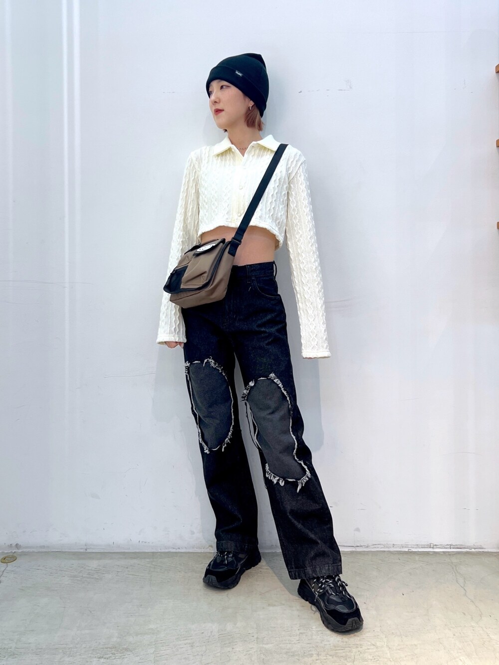 Emiru(XLARGE/X-girl新潟(X-girl))のデニムパンツ「DISTRESSED 2TONE DENIM」を使ったコーディネート