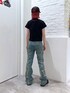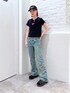Instagram ▷ @pemi_513 【 165cm / 普段TOPS : M.L BTM : S.M 】 *TEE : M ジャストサイズ! 首元にもデザインがあって可愛い♡ *PANTS : M フレアシルエットのローライズデニム! カラーと星のデザインがすごくかわいいです☆