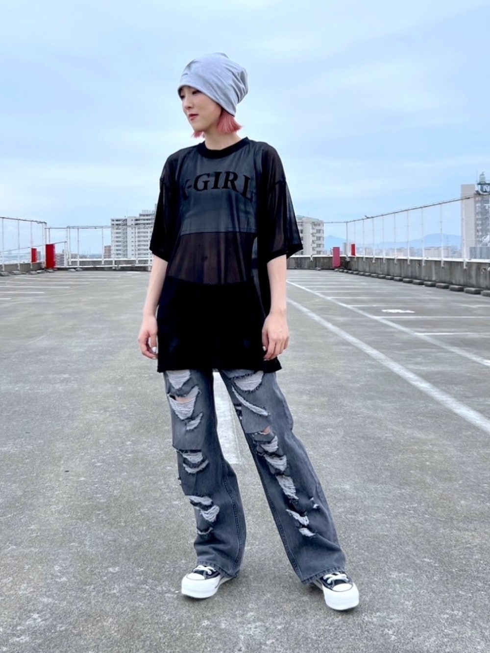 Emiru(XLARGE/X-girl新潟(X-girl))のデニムパンツ「RIPPED DENIM PANTS」を使ったコーディネート