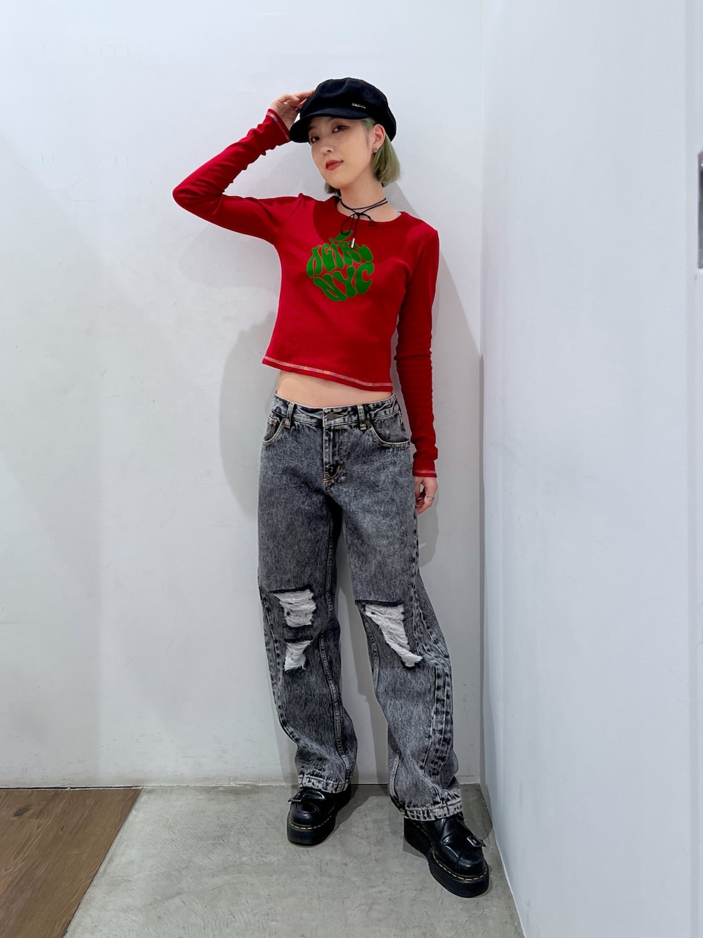Instagram ▷ @pemi_513 【 165cm / 普段TOPS : M.L BTM : S.M 】 *TOPS : S ぴったりとしたサイズ感! 赤とグリーンの組み合わせ最高☆ *PANTS : M 加工感がかわいいパンツはMでちょうどよかったです✌︎