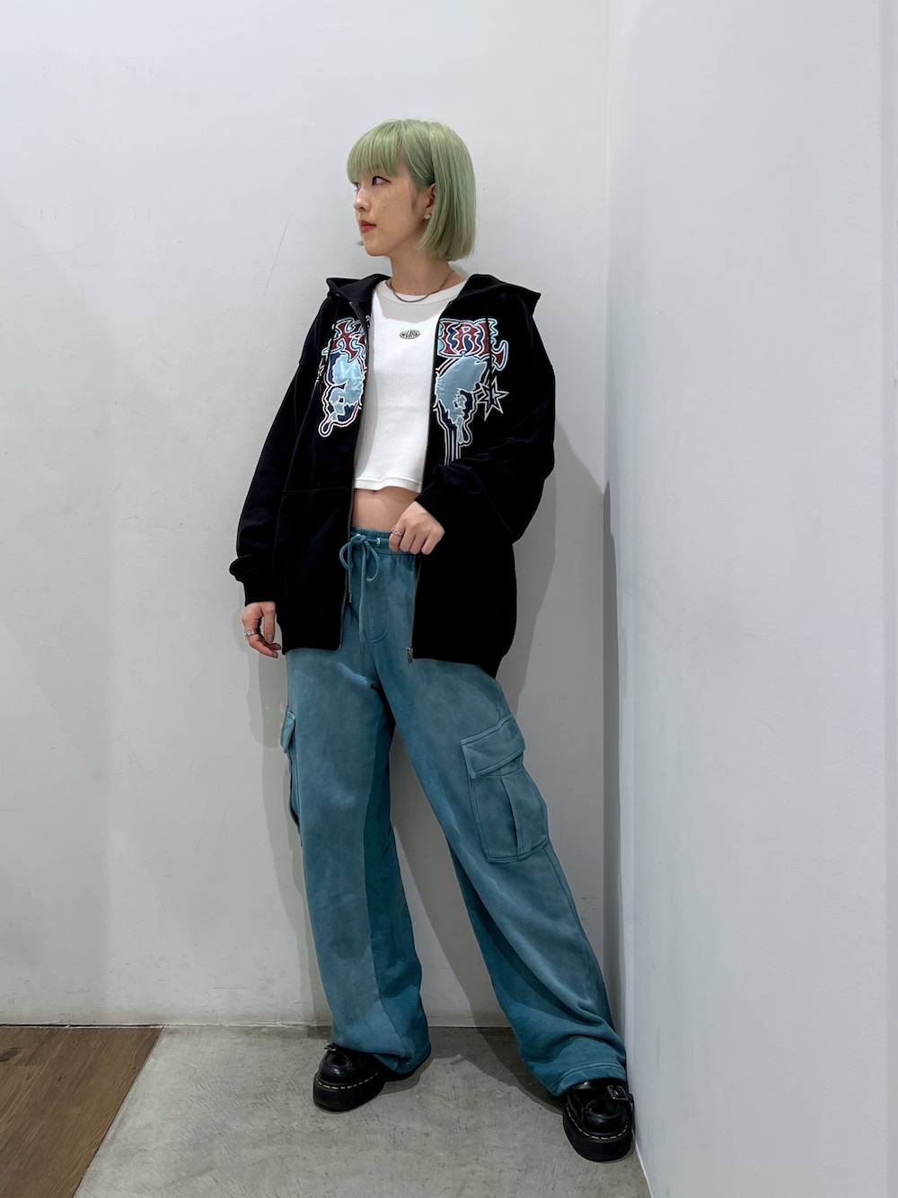 Emiru(XLARGE/X-girl新潟(X-girl))のスウェットパンツ「LOOSE FIT SWEAT CARGO PANTS」を使ったコーディネート