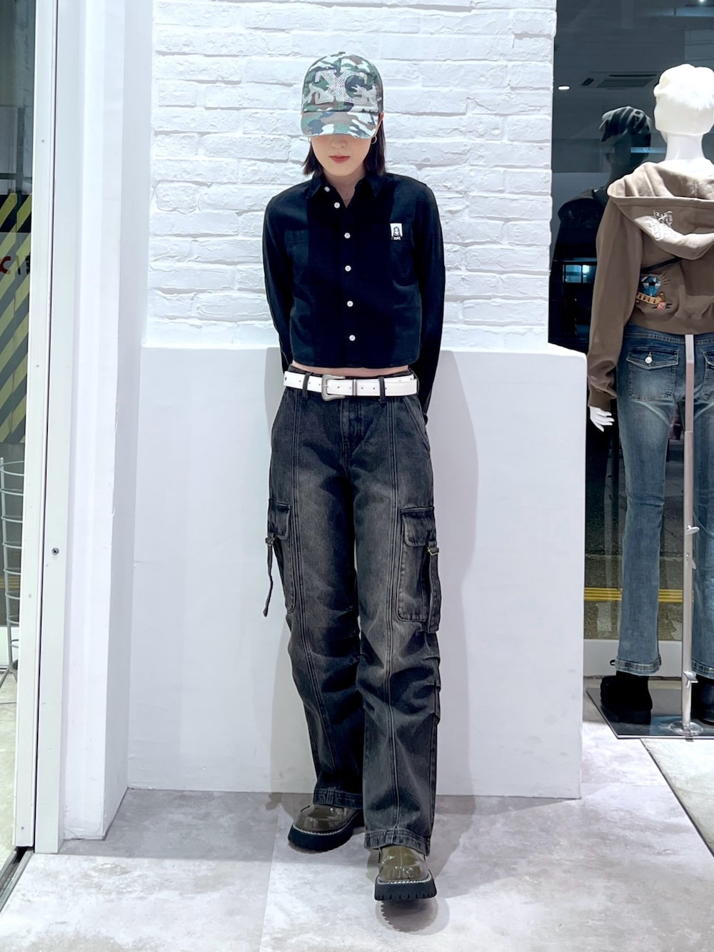 Emiru(XLARGE/X-girl新潟(X-girl))のデニムパンツ「LOW RISE CARGO POCKET DENIM PANTS」を使ったコーディネート