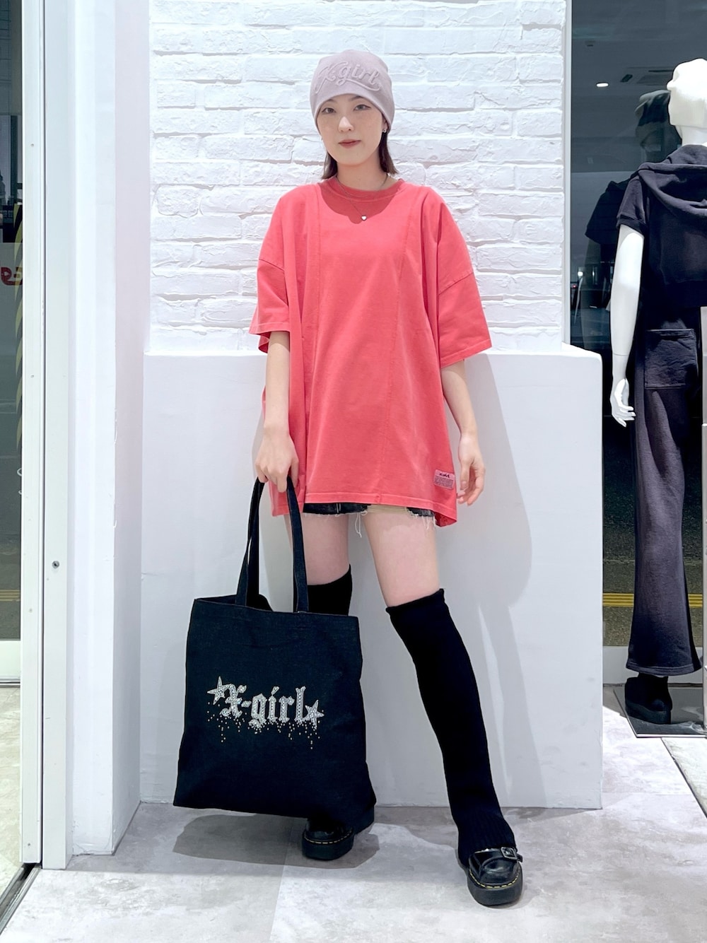 Emiru(XLARGE/X-girl新潟(X-girl))のレッグウォーマー「2WAY LOOSE SOCKS」を使ったコーディネート