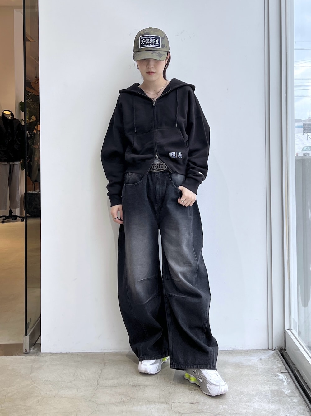 Emiru(XLARGE/X-girl新潟(X-girl))のデニムパンツ「WIDE BAGGY DENIM PANTS」を使ったコーディネート