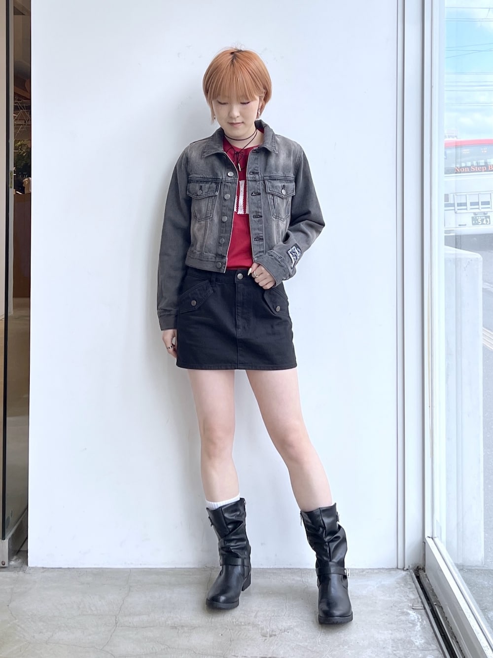 *JACKET : S *TEE : M *SKIRT : M TEEの赤がポイントになるように他のアイテムはブラックでまとめました!赤かわいすぎ!
