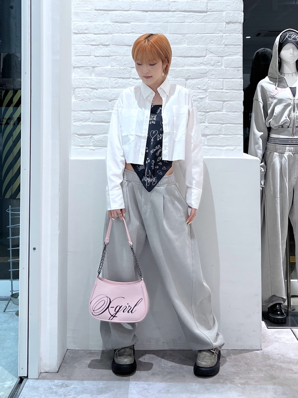 Emiru(XLARGE/X-girl新潟(X-girl))のショルダーバッグ「SPRAY SCRIPT LOGO SHOULDER BAG」を使ったコーディネート