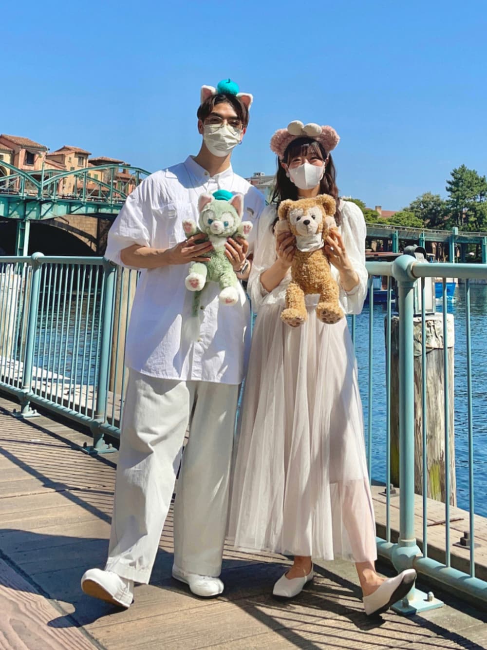 前の投稿(ジェラトーニくんコーデ)と 同じ場所で撮影しました📸 今回はダッフィーくんも一緒🐻 with @kumahoge