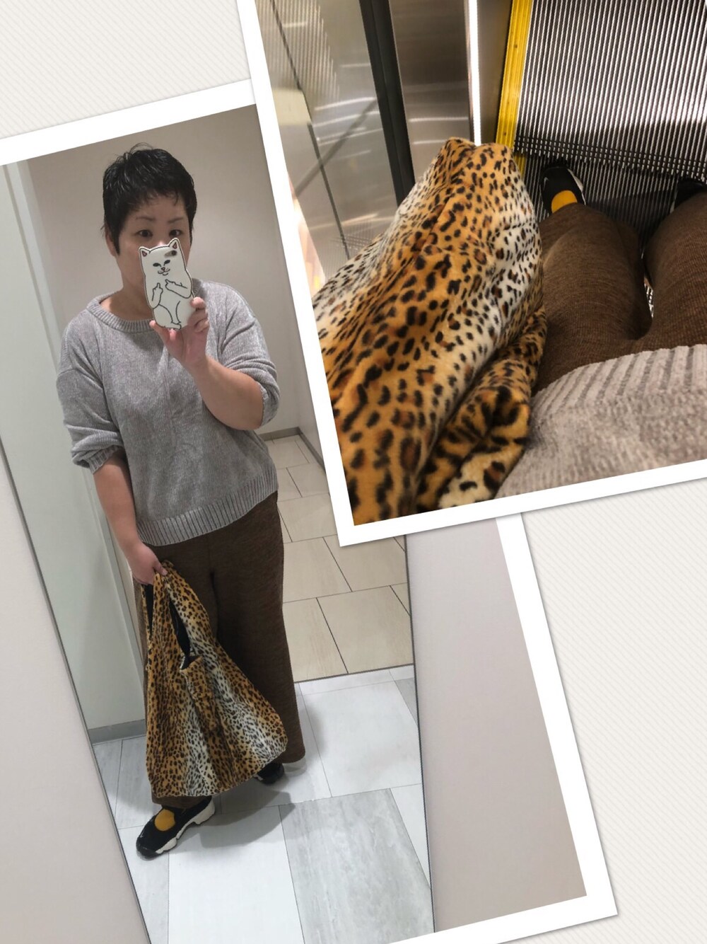 すーさんDXのトートバッグ「TWEEDMILL/ツイードミル レオパードバッグ」を使ったコーディネート
