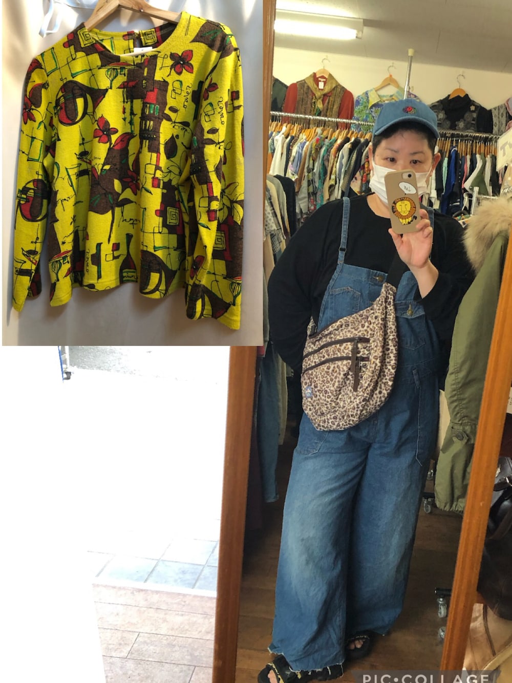 いつもの休日 古着屋さんへ キャップとオーバーオールで いちおデニデニコデ いつも見るだけなのに 今日は珍しく 昭和レトロなトップス 買いますた ダメージデニムと 合わせたら 可愛いだろーなと思って 冬モノなので しばらくおあずけです