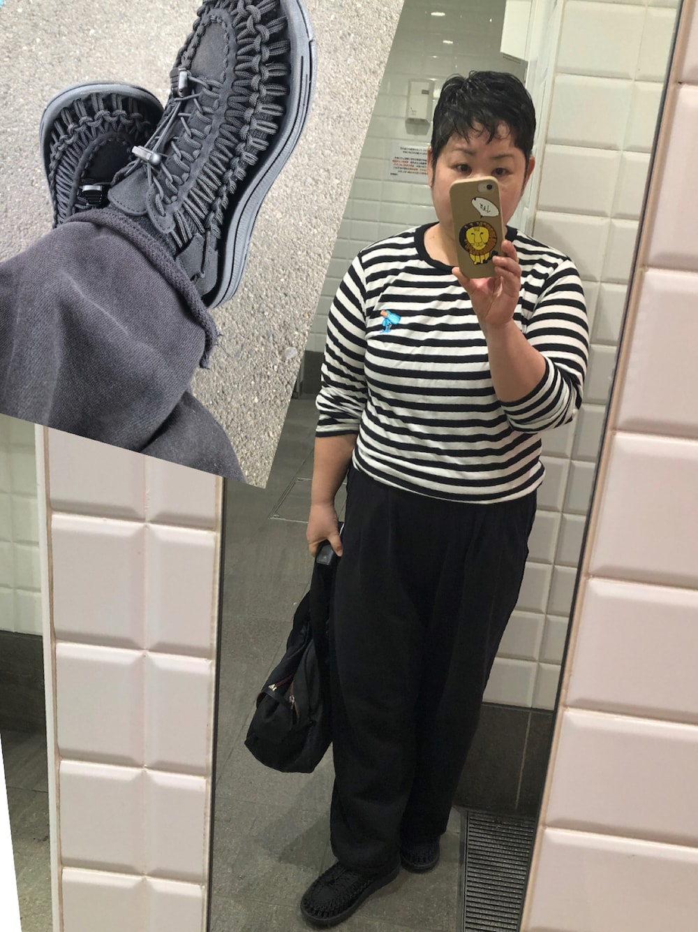 SINSSの2タックスウェットパンツは あまりに良くて 黒とグレーと2色買いしました🖤🩶 さいきん ボーダーが着たい気分になってるので ボーダー投稿が続くかも笑