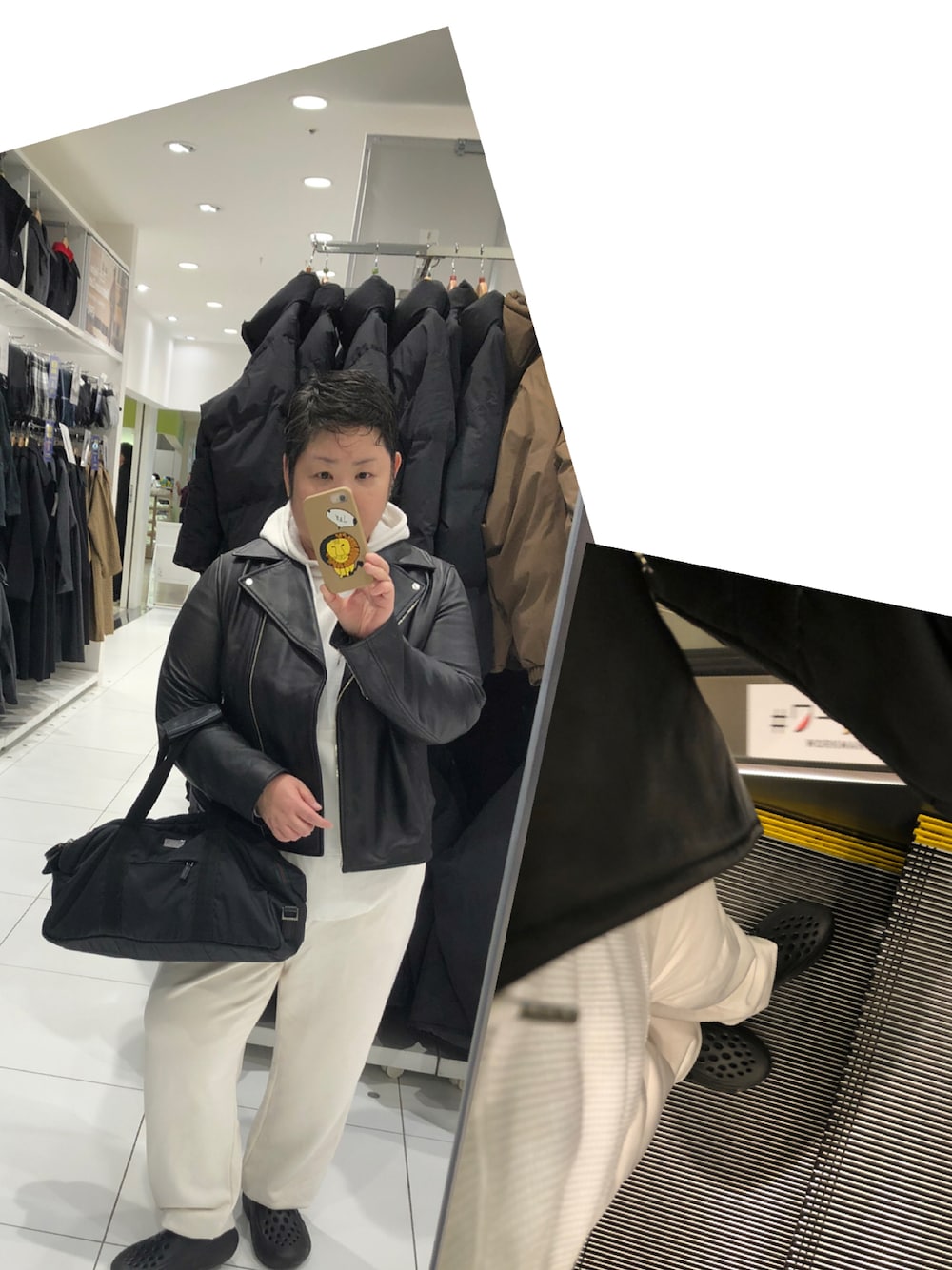 ワッフルパーカーに UNIQLOのスウェットパンツ ライダースコデ🤍🖤 今日は暖かいので ちょっと暑いコデですが 帰りが寒いので革ジャンを 土曜日はクソ忙しいので 憂鬱です〜〜〜
