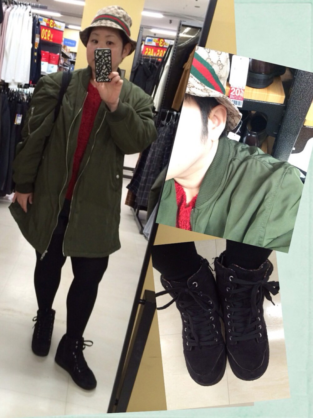 GUCCIのハットとPUNYUSの ロングMA-1で 喪黒ふくぞうコーデです! (=゚ω゚)ノキリッ✨