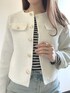 彭海城(SAISON DE PAPILLON)のノーカラージャケット「【お気に入り1万突破!】ノーカラーツイードショートジャケット オフィスカジュアル きれいめカジュアル レディース韓国」を使ったコーディネート