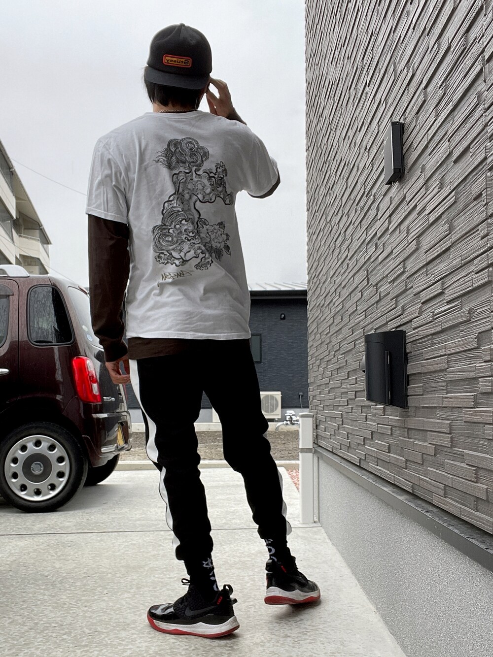 思ったより雨強かったんで 濡れない場所でパシャリ📸 吹きつけてきて 結局びしょ濡れ( 'ω' 三 'ω' )笑 背中の獅子?が泣いておる🫢🫢 おはようございますぺんぎんです🐧♪ いつもいいね、お気に入り、 ありがとうございます☺️✨ 素敵なフォルダイン等 いつも感謝しております🥲❤️ 今日はストリートコーデ∩^ω^∩♪ こうゆうの着ると大体言われるのが 『祭りじゃないのに祭り気分じゃの。』 祭り刺繍じゃないわよ🫠🫠 足元はスッキリしたかったので 軽くソックスin🧦 なんか雨降ったり 都会では雹降ったり大変ですが 皆様良き日をお過ごし下さい🐧✨