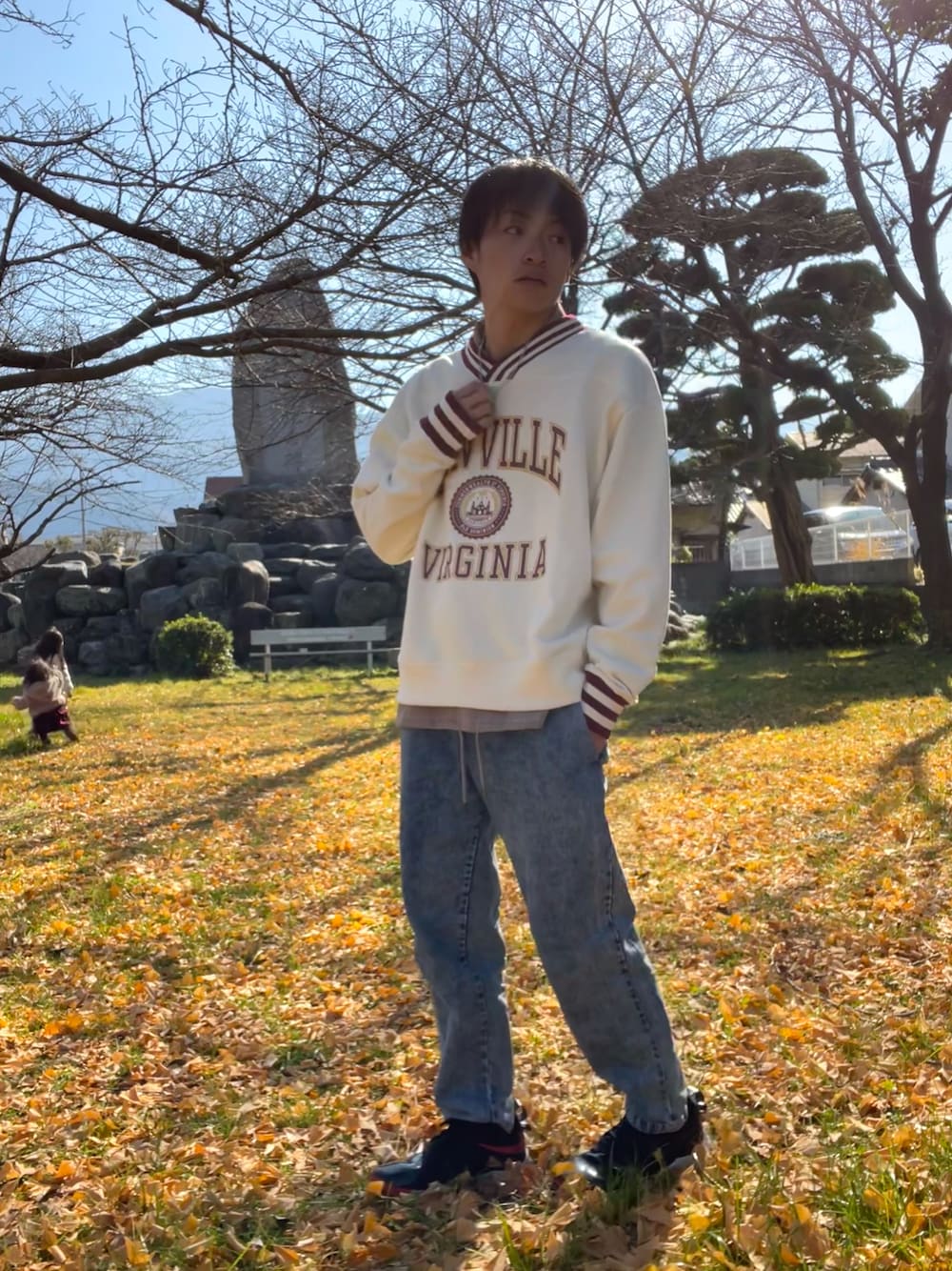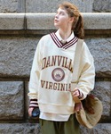 空飛ぶぺんぎんのスウェット「ラインリブスウェットVネックカレッジロゴプルオーバー」を使ったコーディネート