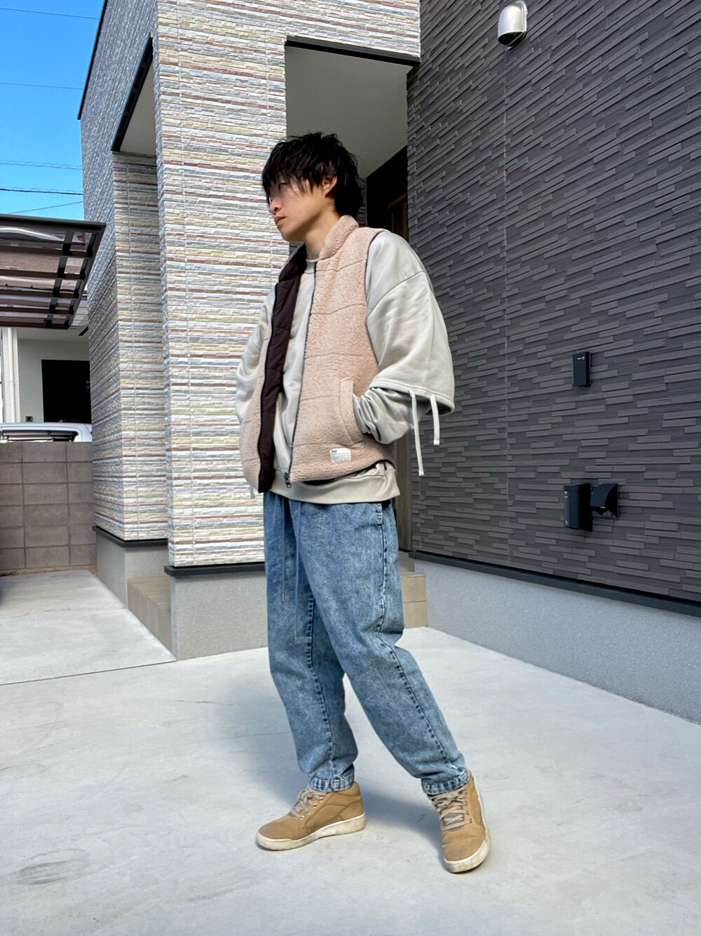 空飛ぶぺんぎんのダウンベスト「海外の輸入店で買いました☺️リバーシブルで使えるので暖かいし使い勝手が良いしなので重宝しています∩^ω^∩」を使ったコーディネート