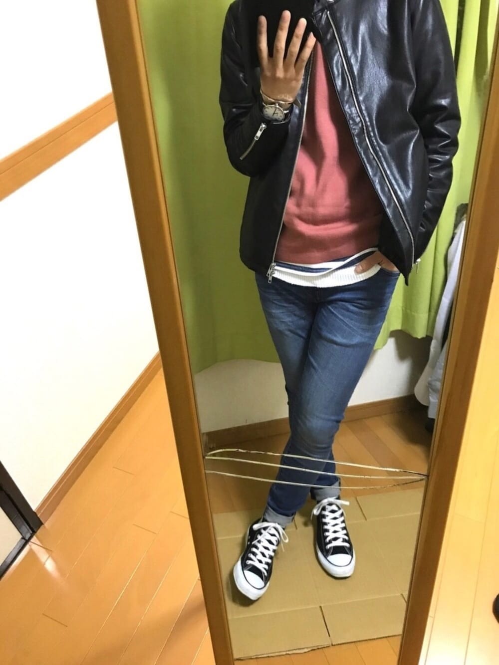 ご訪問ありがとうございます😊 セーブいいねいつもありがとうございます😊 今朝は寒いですが、皆さん体調は大丈夫でしょうか? 昨日、千本桜🌸の絶景ポイントで撮影して来たのですが全然的にピンク色になって来ましたね😊天気悪い🌥ですが、こちらの見ごろは13日となっているので、ある意味幸いですね😌 久しぶりにライダース着てみました😊ちなみにこのピンク色のニットも久しぶりに着ましたww 多分、私と同世代で若い頃にストリート系のファッション誌を読んでいた方は解って貰えると思うのですが“どうしてもレイヤードしたい癖?”みたいなものがあって、夏でもなんか重ね着してしまったりしてます🤣 コレは個性ととらえてもらおう😤 靴をどうしようか悩んだ結果、オールスターになりました。やっぱり何にでも合うオールスターは名作ですね👍 ポーズとっている自分を見てるとなんか笑えてくる🤣 では、また👋