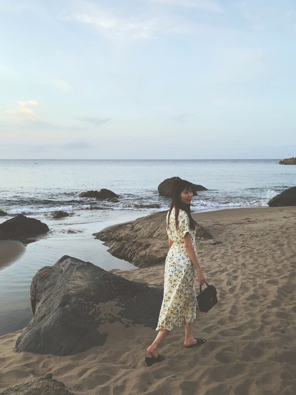 ことし初うみ𓂃𓂂𓈒𓏸 レモン柄のワンピースを主役に着たくて 小物を黒でまとめたしんぷるこーで🍋♡