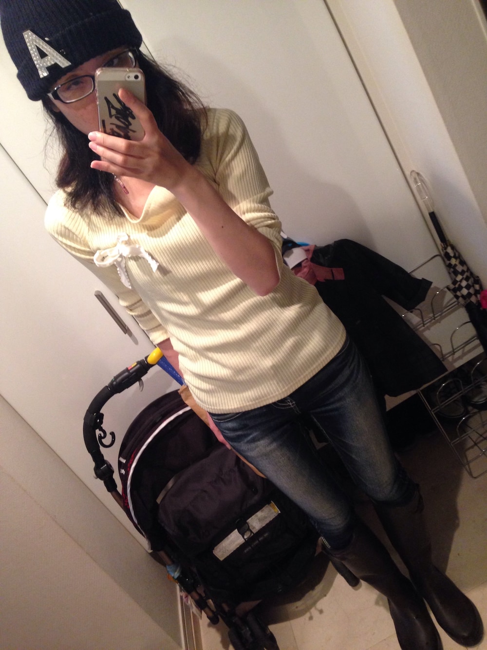 幼稚園に娘を送り出してきました…。デニムをブーツインして雨の日コーデ!寒いので長袖&ニット帽!