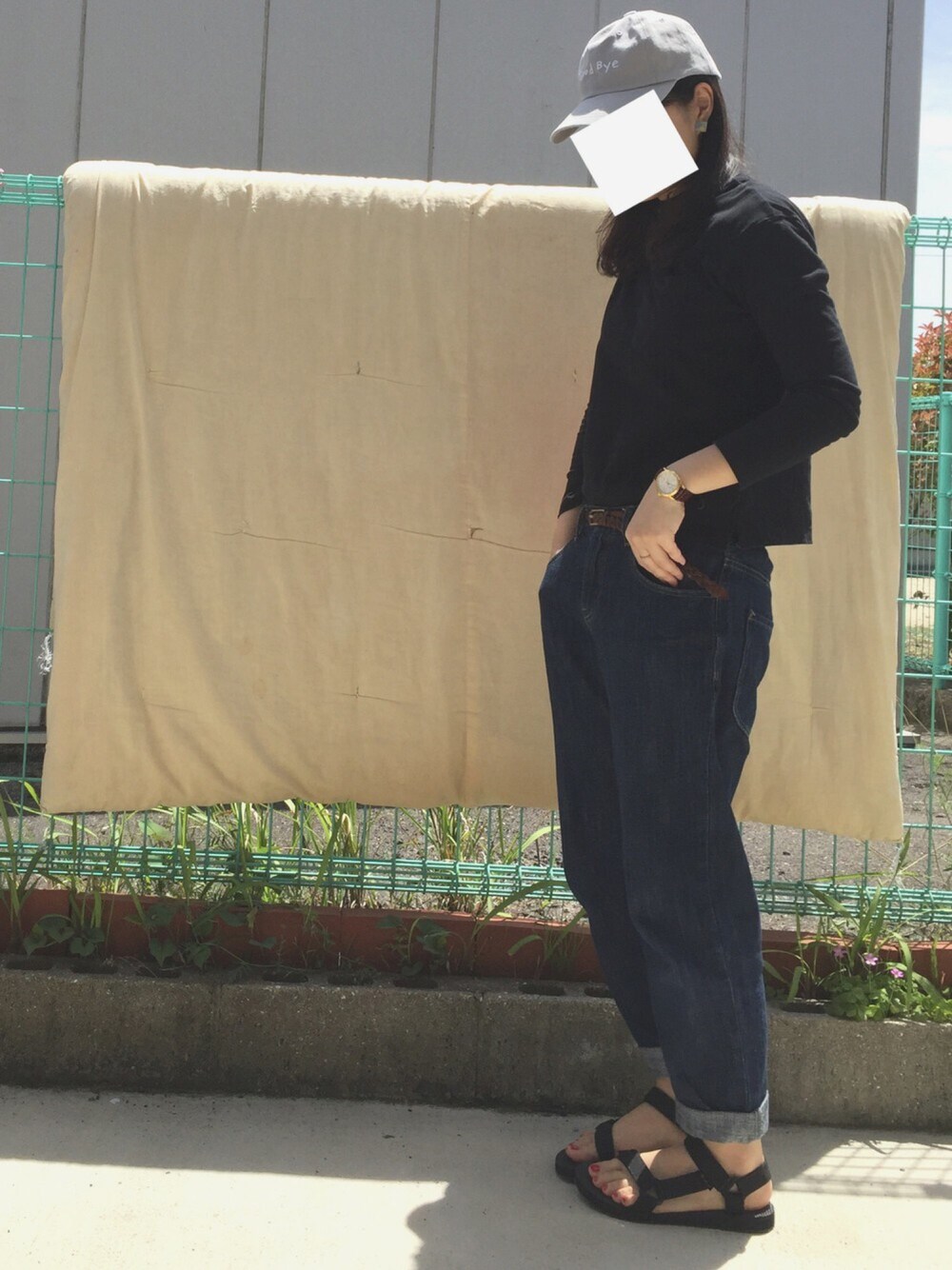 m i h o .のパンツ「10ozスラブインディゴデニムボーイフレンドパンツ」を使ったコーディネート