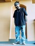 ぺーさんのデニムパンツ「【neos -addictive design-】ルーズシルエット ハードダメージ デニム パンツ」を使ったコーディネート
