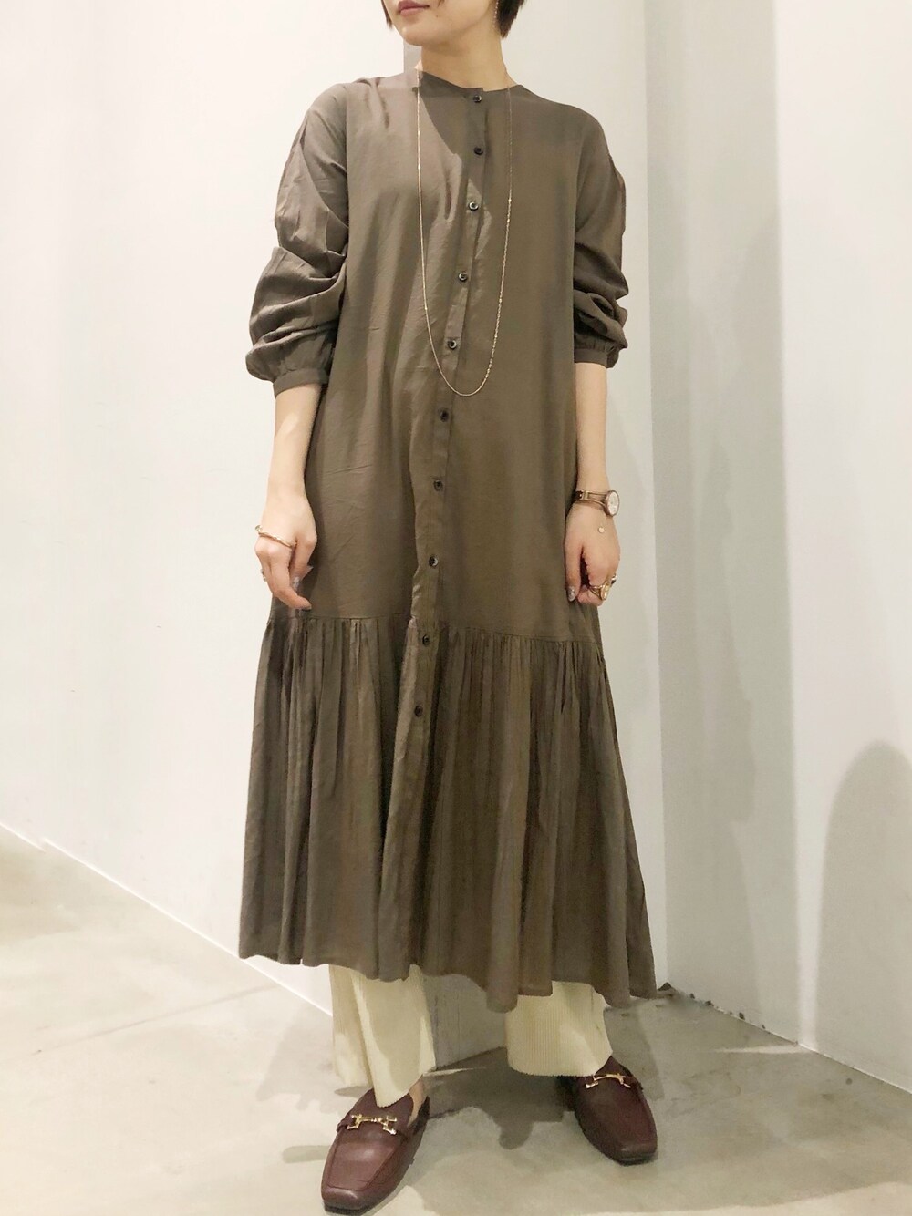 ワンピース【Fサイズ】 ゆったりとした作りなので 問題なく着用が出来ました! ワンピースとしても羽織としても 使えるこれからの季節に1枚欲しいアイテム◎ ボトムス【Lサイズ】 広がりすぎないので ワンピースのレイヤードにも◎ ウエストもゴムなので安心です!