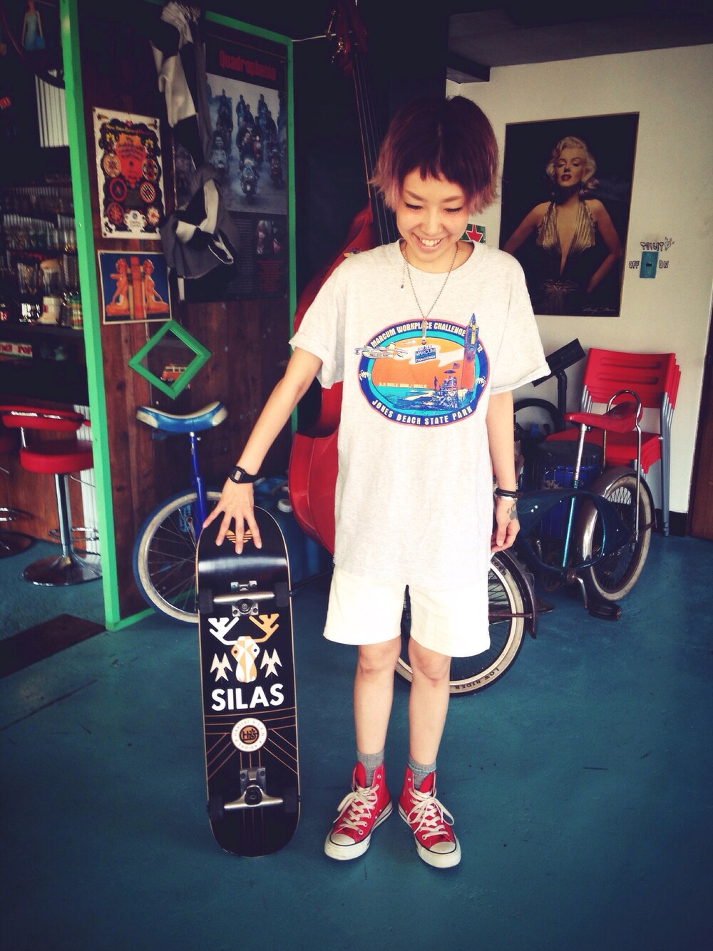 髪切ったー! そして10年ぶりぐらいに西海岸行って 2千円でused tee4枚げっと!笑 のうちの1枚です☺︎ あと、デッキ新調したので自慢。笑
