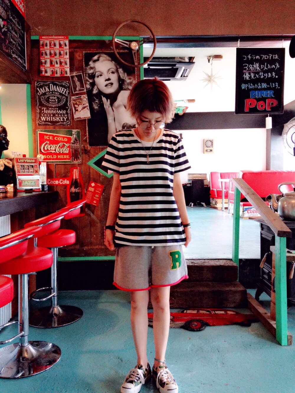 昨日友達と一緒にボーダー買ったので 今日は遠距離でおそろ☺︎ ちなみに友達SサイズわたしXLサイズ。笑
