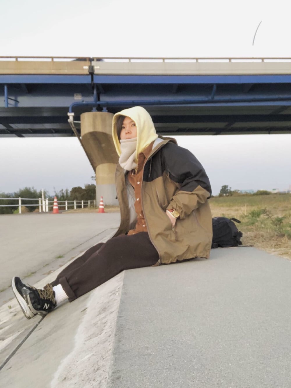 夕暮れの河川敷。バイクで来ました。