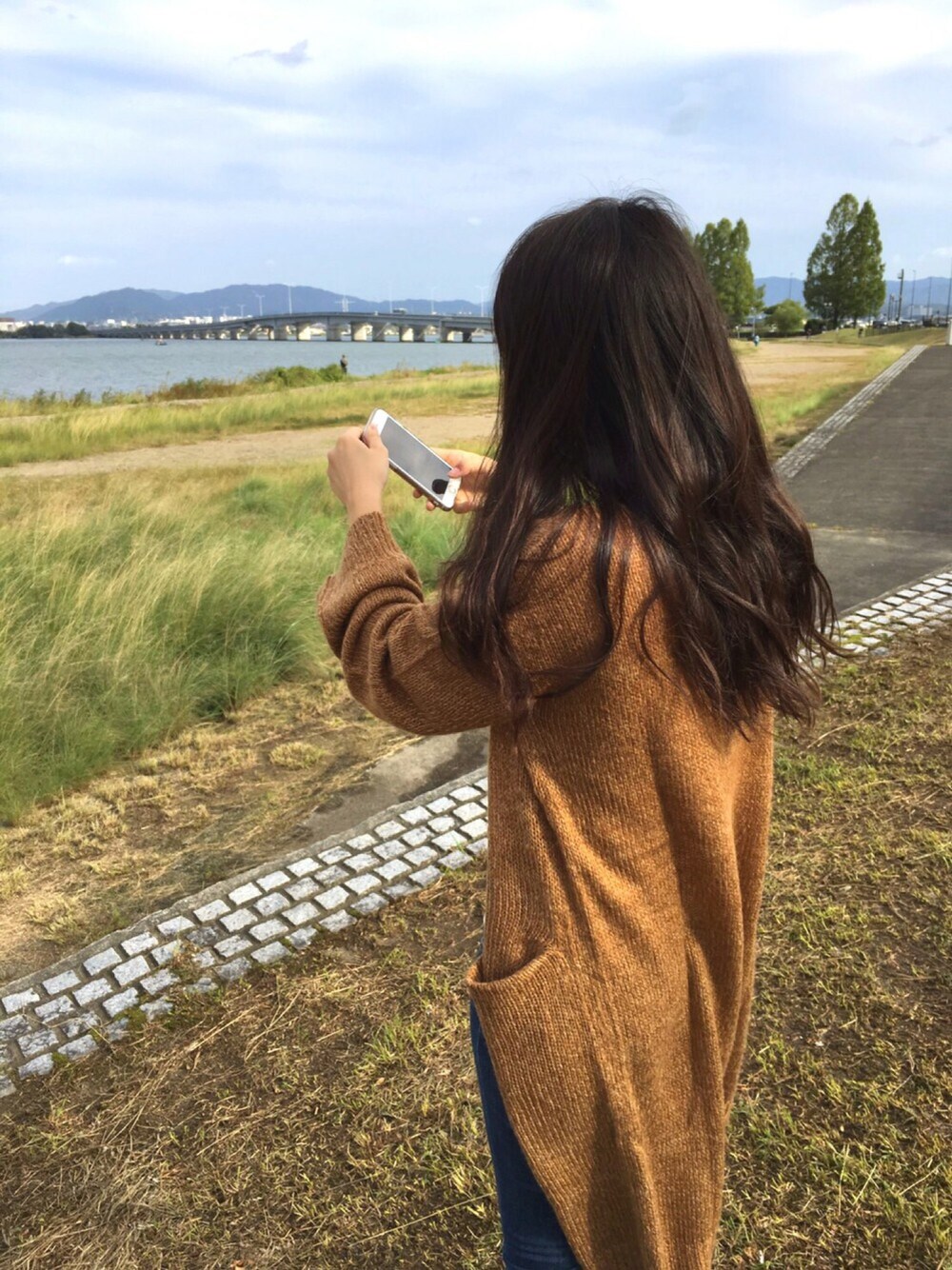 滋賀県の近江大橋の近く〜! いい感じに涼しくて楽しかった( ˙˘˙ ) 靴は写真のじゃないけどこんなん……笑 カーディガン:H&M トップス:ユニクロ パンツ:GAP くつ:NIKE カバン:Charles&KEITH