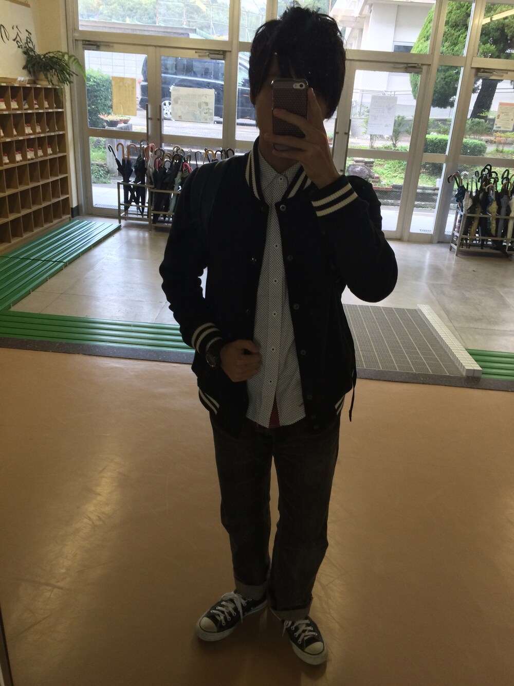 寒いですね。体調に気をつけたいものですが! さて明日は出身中学の吹奏楽部の定期演奏会。 前日仕込みのお手伝いにきてます。 スタジャン着たかったので、着ました。ただ 中学校へ行くので、シャツできれいめに。 そんなに今日はこだわりないんですが、 いろんな人に大人っぽくなったねって言われました。 ボタン全部閉めてるからか?笑 なにはともあれ18歳の冬が来ます。