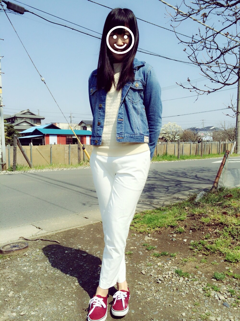 パンツはストレッチが効いててとても履きやすいです。さすがUNIQLO👚♡ 今日はぽかぽかしてるので春らしいコーデにしてみました^ ^