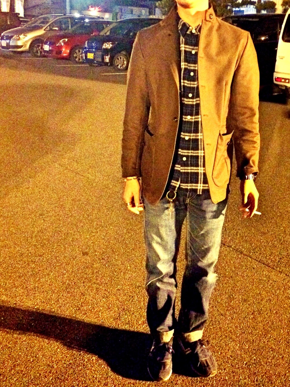 むかーし古着屋で買った TOMMOROW RANDのジャケット。 チェックシャツと合わせてカジュアル目コーデ。 デニムは901♡