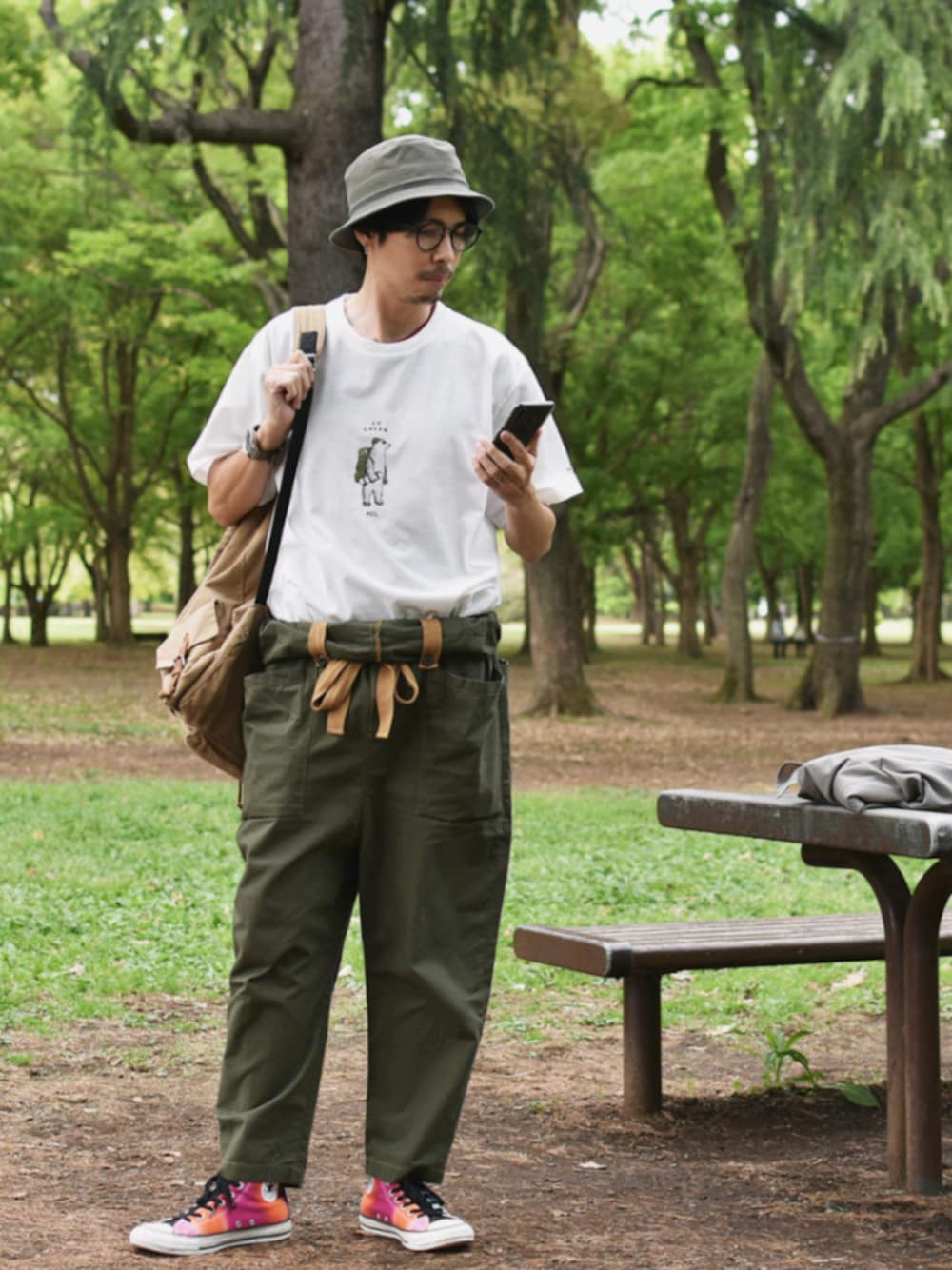 さすがに 半袖は早すぎました🥶 さてコーデは タックインスタイル😎✨ エプロンパンツの エプロン下ろした結果ですが 割と気に入っています😁👍 ちとスタイル悪くみえるのが難点😂 アンバサダーをしている nakotaの新作コラボTシャツ👕 可愛いデザインで機能性も◎ チェックしてみてくださいね! 🐣インスタやっています☺ よろしければ遊びに来てくださいね♪ @tsuchipon