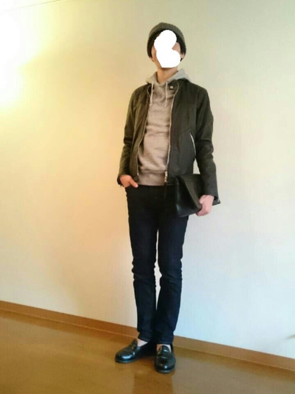 28回目の投稿です。 もう3月になるというのに、雪が一瞬ちらついたんですが、何ともまぁと言ったところですかね。 <アイテム情報> ライダースジャケット:ビューティー&ユース ユナイテッドアローズ パーカー:ユニクロ スキニージーンズ:ユニクロ ニット帽:ノーブランド クラッチバッグ:エディフィス ローファー:ジャランスリワヤ <point> スキニージーンズやライダースジャケット、寒色系コーディネートと正統派なきれいめカジュアルコーディネートですが、レザーのクラッチバッグとローファーで、きれいめコーデでもややカッチリめに着こなしてみました。 閲覧していただき、ありがとうございます。